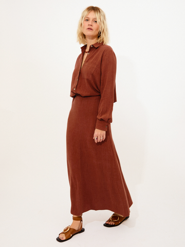 Es una falda con un patrón aparentemente sencillo pero muy favorecedora, cómoda y con un tejido muy agradable y fresco. Yo tengo el color teja y es precioso y muy fácil de combinar.
