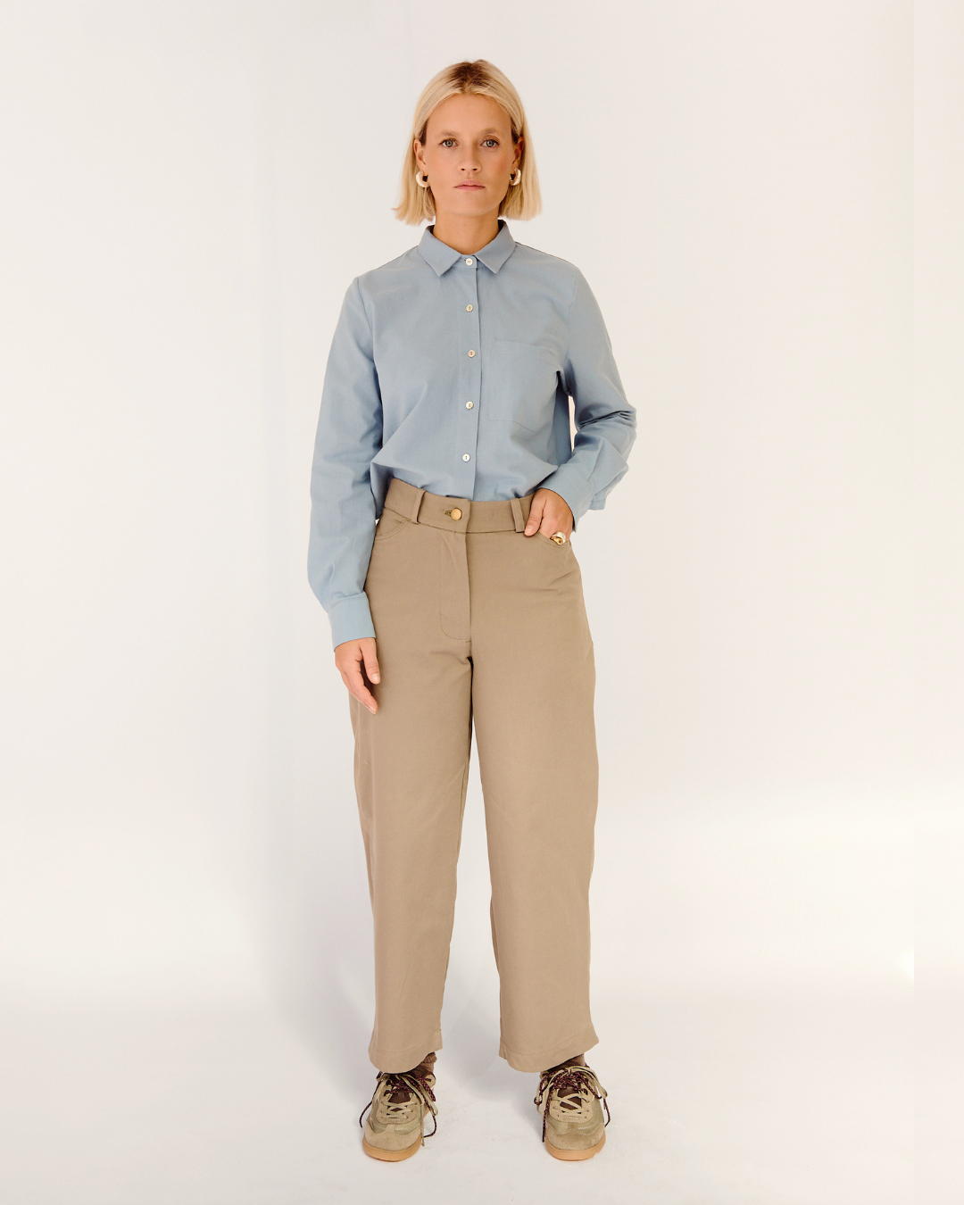 camisa nova celeste + pantalón noa mocha