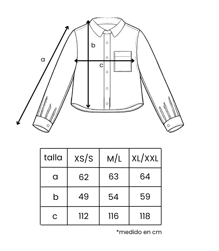 Hip-length shirt with long puffed sleeves at the hem and Neapolitan cuffs. Detail of overlapping pieces on the front , hidden buttoning and side eyelets to adjust with a bow.