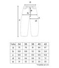 OBSERVACIONES: Su patronaje está enfocado en mujeres con una figura más recta, te recomiendo que compruebes el contorno de cintura y cadera en la guía de tallas. Al ser un tejido de sarga, el fit es más rígido y no cede tanto como la versión de pana, si estás dudando coge la talla más grande. El largo es tobillero, pero si eres más alta y el bajo se puede sacar 5 cm más.