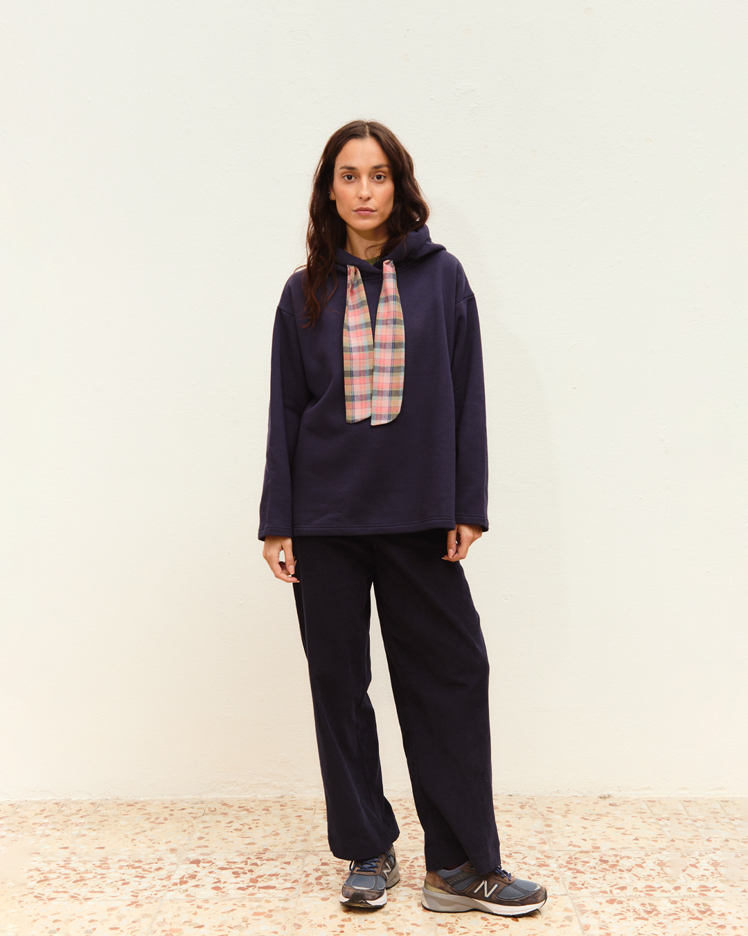 Esta prenda ha sido cortada en Belmonte del Tajo (Madrid) y confeccionada con mimo en Madrid, en talleres familiares que cuidan de cada detalle.