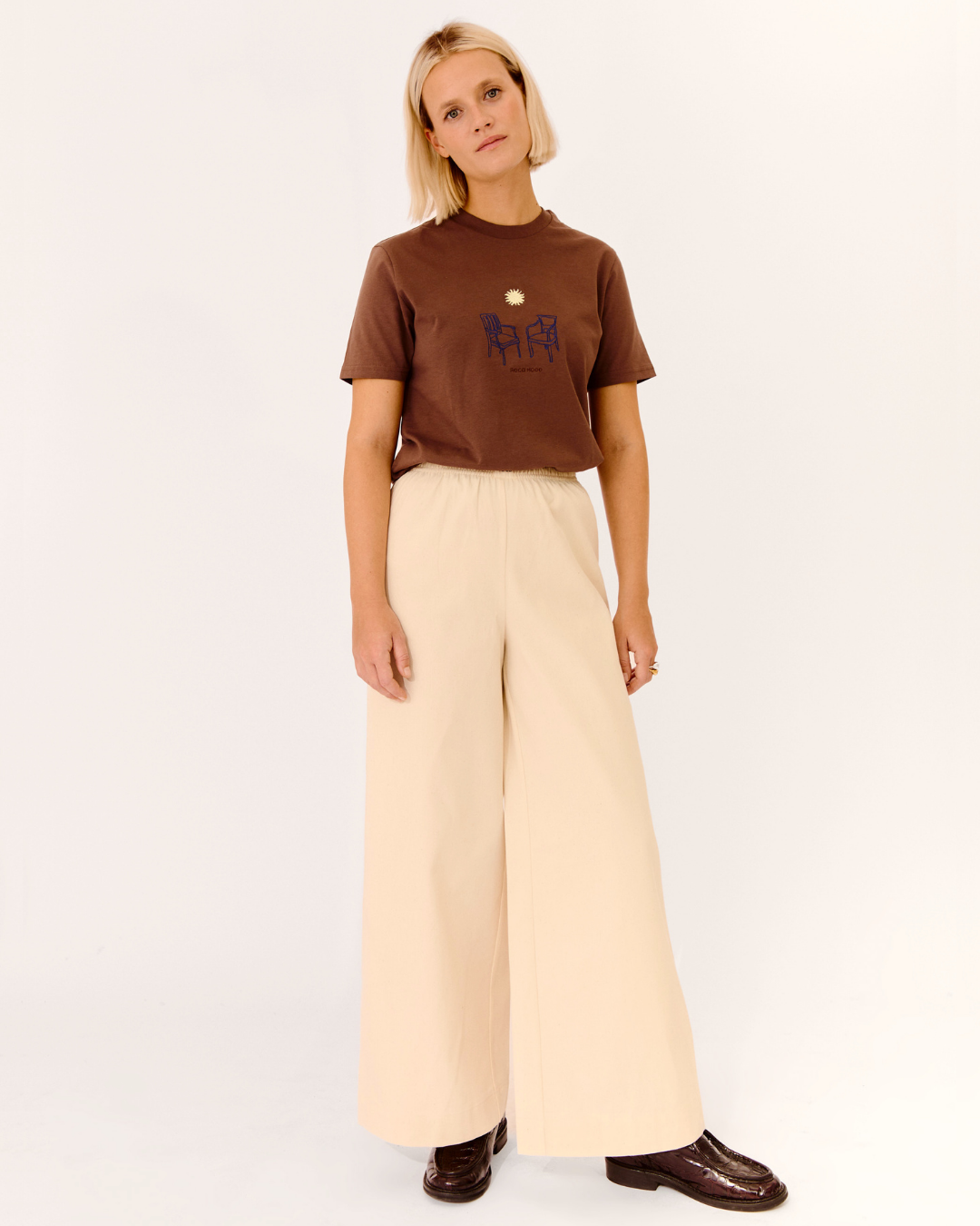 Corte recto, tejido de grosor medio y fit cómodo que se adapta sin marcar. El bordado, hecho puntada a puntada en TELOBORDO (Sevilla), le da carácter a un básico que deja huella.