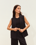 Chaleco con solapa clásica, largo hasta la cadera. Sin duda, un acierto como fondo de armario para toda la vida.