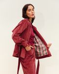 El canesú, los puños y el cuello están forrados con el delicado estampado XMAS, aportando un toque distintivo y lleno de personalidad. Incluye un cinturón para ajustarla a tu gusto y resaltar la figura.