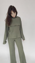 De punto canalé suave y elástico, con corte campana favorecedor y cinturilla ajustable, pensado para acompañarte en todas tus etapas (embarazo, posparto o simplemente cambios de talla).