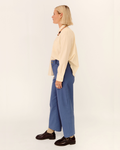 Pantalón slouchy de tiro alto, bolsillos laterales y cinturilla con botón metálico.
